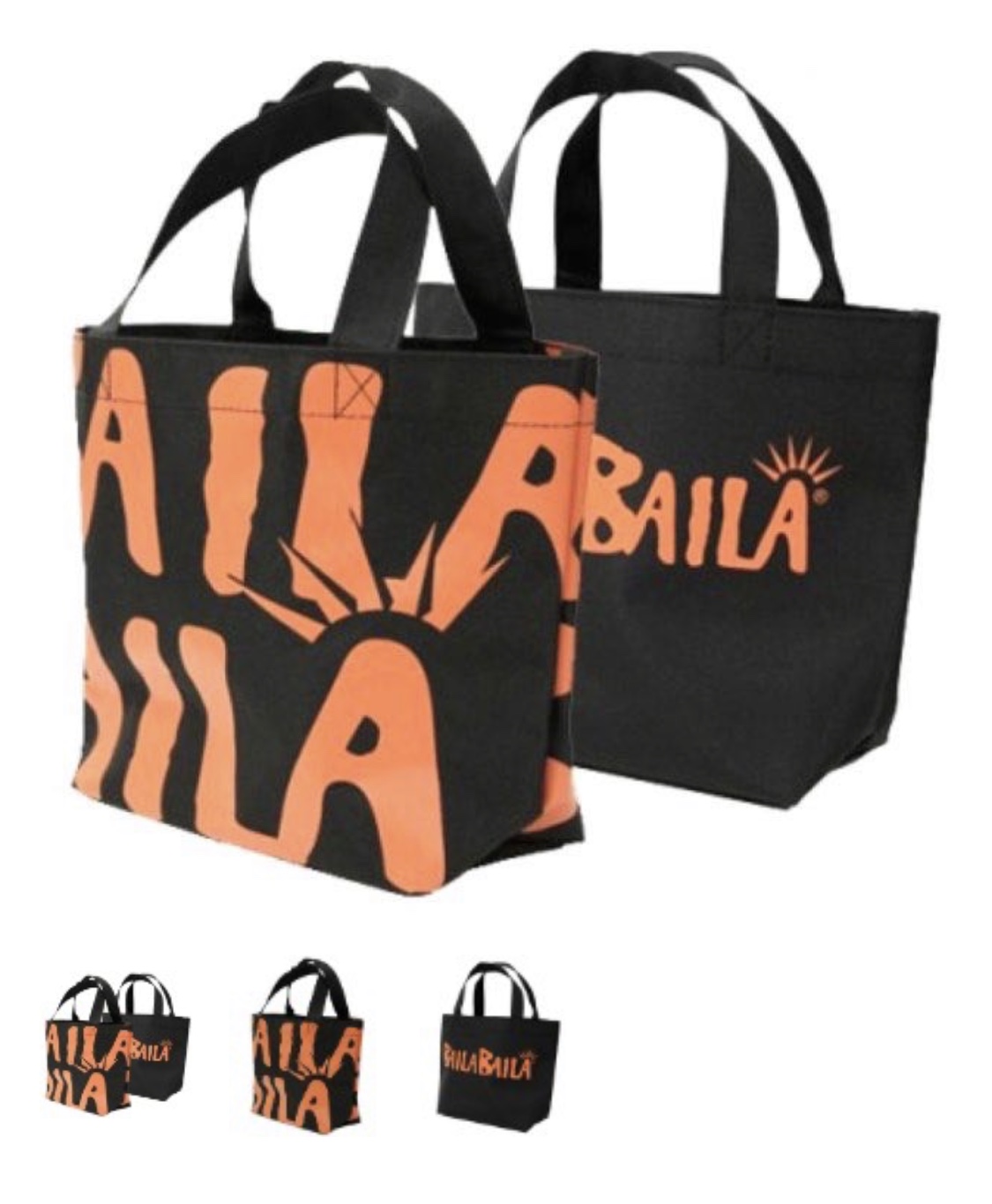 September 7, 2020 BAILABAILA小バッグ BAILA BAILA小バック ¥2,016(税込) BAILA BAILA小バック レッスンの際に持ち歩きやすいコンパクトサイズで、ペットボトル、タオル、 お財布を入れるのにぴったりのサイズです。 デザインは2種類。厚手のしっかりした素材で、できています。 (サイズ共通 幅:約29センチ、高さ:約19センチ、約奥行:10センチ) NA:ビッグロゴ:黒地にオレンジのBAILA BAILAロゴマークがデザインされています! NA:ノーマルロゴ:定番の黒地にオレンジのBAILA BAILAロゴマーク入り! 商品コード BAILA BAILA小バック